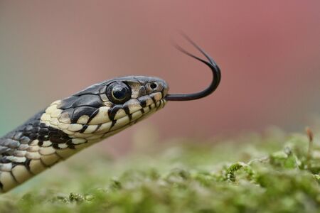 Rat snake with sharp focusing eyes and seems to be hissing.