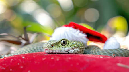 the snake is wearing a Santa Claus hat. 2025 is the year of the green snake