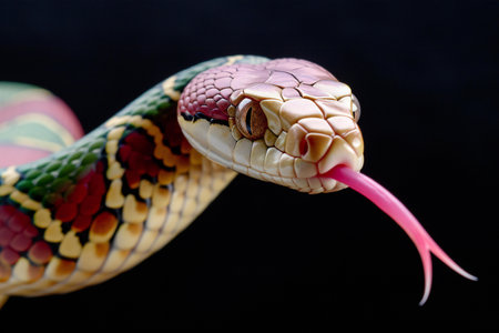 Intense close up of a screaming black snake s head showcasing intricate details and vivid colors