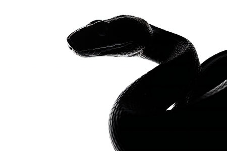 Portrait of a snake in a dark forest. Black and white animal silhouette photorealistic poster.