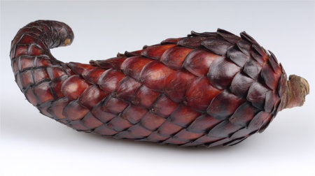 This image features a uniquely shaped, brown pine cone with a striking texture. Ideal for nature-inspired design projects and home decor.