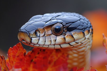 the serpent on the ground in the autumn leaves