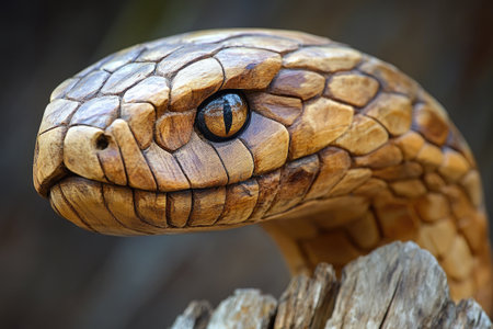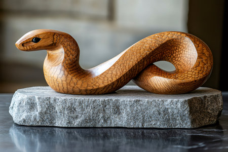 Detailed wooden snake sculpture showcasing lifelike texture and design