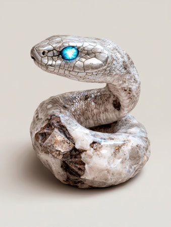 Stone snake sculpture with glowing blue eye