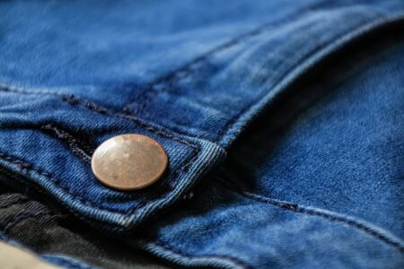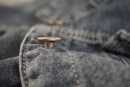 Stylish Denim Textile Showcase: A Close-Up with a Chic Silver Button in 3:2 Aspect Ratio