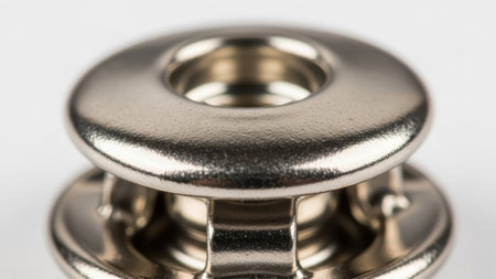 Modern snap fastener button for clothing macro close up