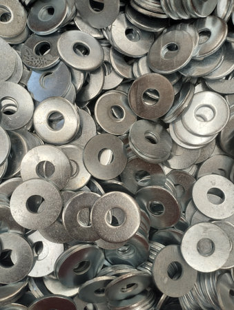 iron washers scattered in bulk