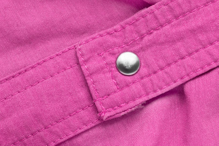 one gray metal rivet button on a pink cotton fabric on a jacket