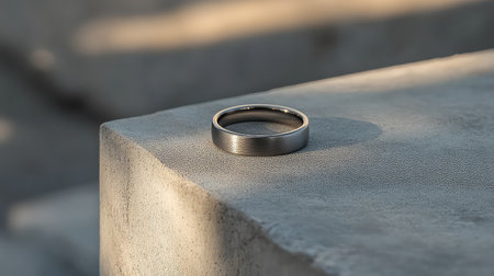 A stunning silver ring captures soft lighting on a textured stone surface during twilight, highlighting the beauty of minimalist design.