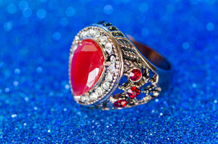 Jewellery ring against blue background