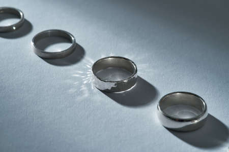 Close up view of sparkling silver engagement rings