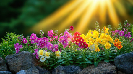 beautiful summer colorful flowers of lion's garden in sunshine with bokeh
