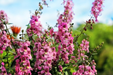 Snapdragon flowers blooming in vibrant pink and orange colors