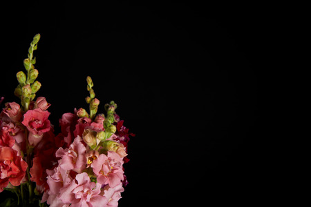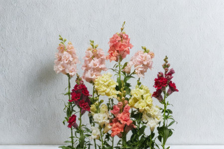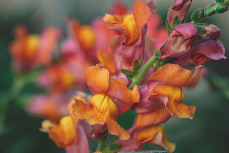 Colorful snapdragon flowers close up. Beautiful floral background for posters, blogs and web design. Selective focus