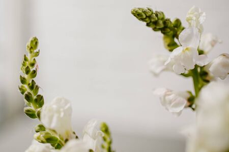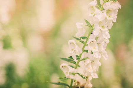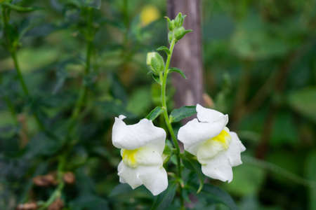 White Snapdragons flowers in an Indian garden. Antirrhinum is a genus of plants commonly known as dragon flowers, snapdragons and dog flower