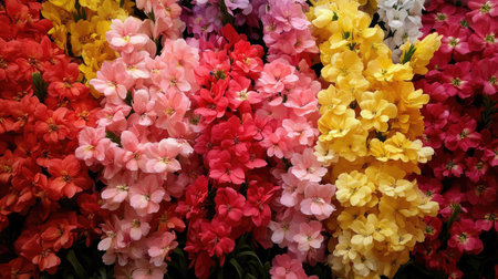 A stunning display of vibrant flowers in various shades, showcasing beauty in nature. Perfect for themes of growth, freshness, and floral arrangements.