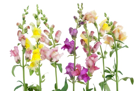 Colorful snapdragon flowers isolated on white background. Studio shot.