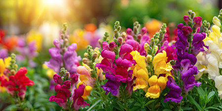 beautiful summer colorful flowers of lion's garden in sunshine with bokeh