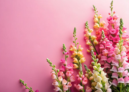Valentine's Day Flat Lay: Soft Snapdragon Blooms & Pink Background - Top View