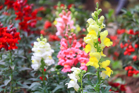 Close up of colorful snapdragon flowers in the garden, Thailand.