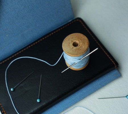 Needle and thread for sewing in woman hands