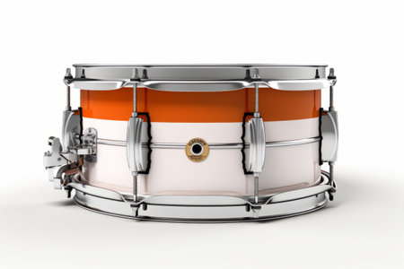 Close-up of a snare drum, percussion instrument on a dark background with beautiful lighting, copy space.