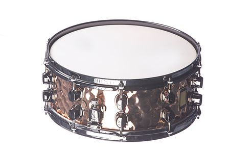 Close-up, snare drum, percussion instrument against a dark background with stage lighting, copy space.