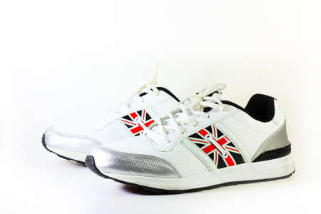 White womens sneakers on a white background. Sport shoes.