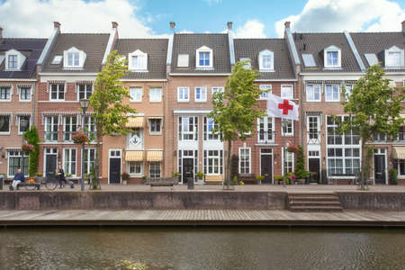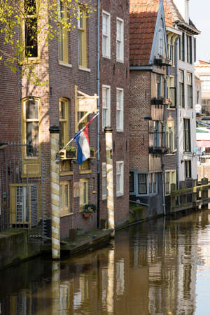 Dordrecht city - typical facade and buildings with waterways - Netherlands - Holland