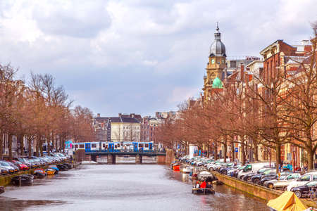 Beautiful canal in Amsterdam, The Netherlands.