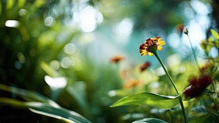 Close-up image of a vibrant flower with a long stem standing tall against a backdrop of lush, blurred greenery. The focus is on the flower, creating a beautiful contrast between the sharply defined subject and the softly out-of-focus background. The image conveys a sense of natural beauty and tranquility.