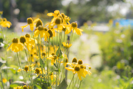 Beautiful yellow flowers in the park. Shallow depth of field.