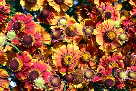 Helenium hybridum flowers in the botanical garden. Natural background.