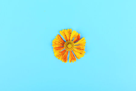 Autumn bouquet of bright flowers (Helenium autumnale). Concept for autumn background or postcard. Selective focus.