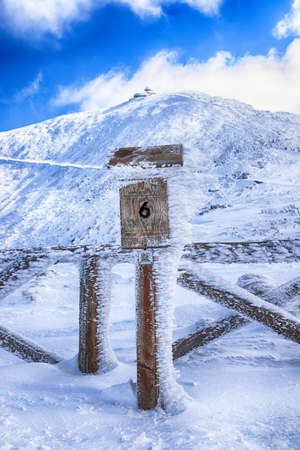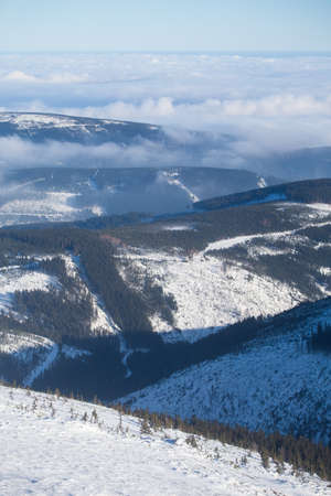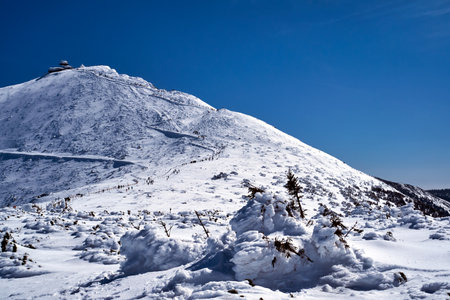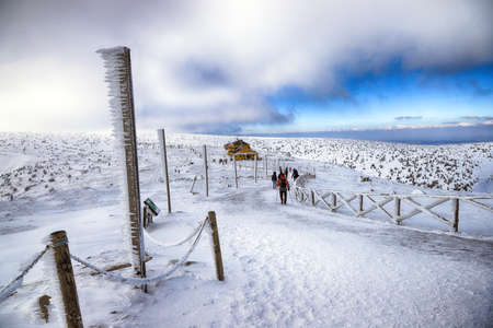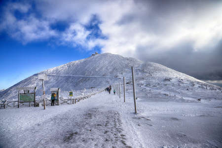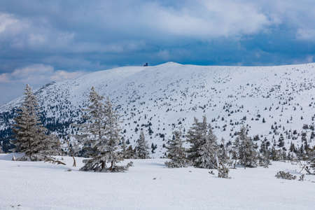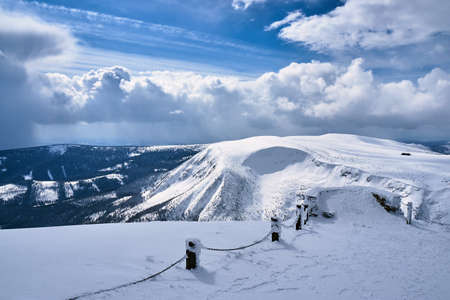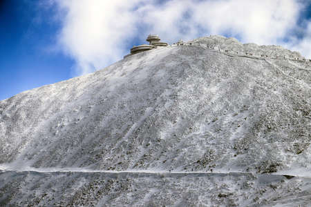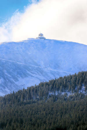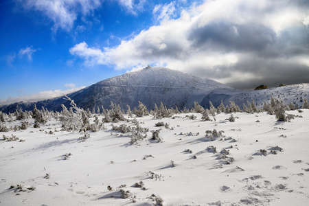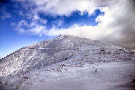 Snezka or Sniezka (in Czech and Polish) is a mountain on the border between the Czech Republic and Poland. Winter landscape. Giant Mountains, Poland, Europe.