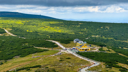 mountain slope and shelter in the Giant Mountains, Poland
