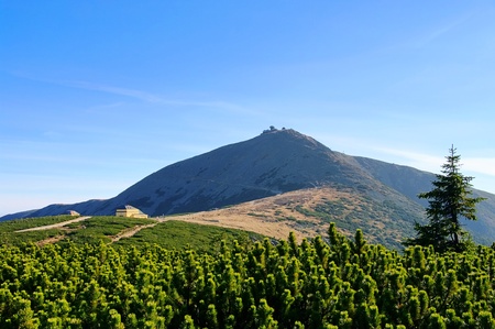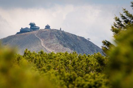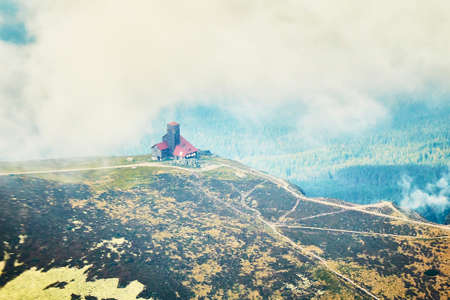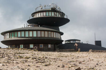 Meteorological Mountain Observatory in Snezka mountain - highest top of Czech Republic in Giant Mountain - view of Poland