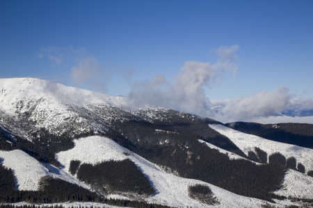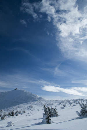 Giant mountain and their Giant mine. Landscape view in winter. View of peaks. (Czech Republic Giant mountain)