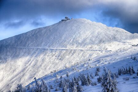 Detail view of the highest mountain of Czech republic during winter - Snezka in Krkonose National Park.