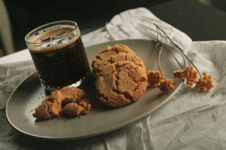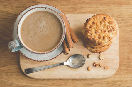 homemade cakes - delicious and tasty cinnamon cookies with cup of coffee