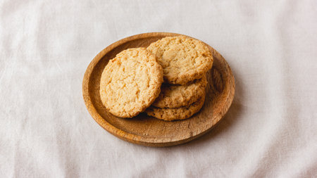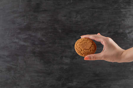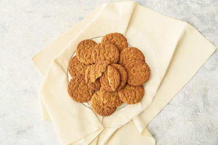 Oatmeal cookies on a wooden plate. Healthy food for breakfast or a snack. side view.