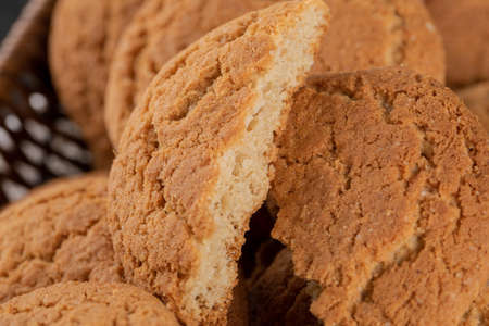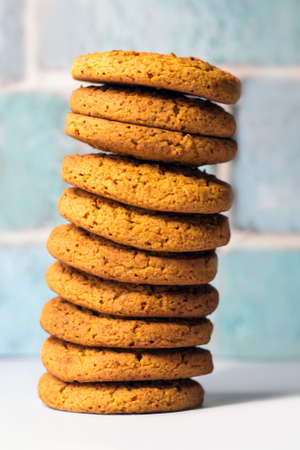 Cookies studio image. Homemade tasty cookies on a blue background. Background of cookies.