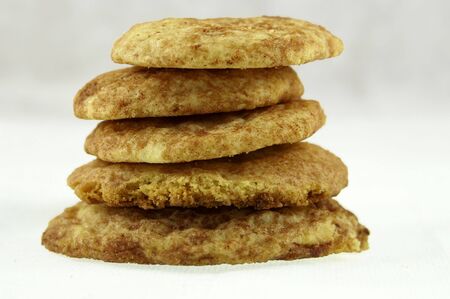 A bunch of snickerdoodle sugar cookies piled and stacked on one another