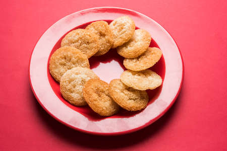 Stock Photo of Anarsa which is an authentic Maharashtrian sweet pastry-like dish especially made in the festive season in Maharashtra and Bihar, selective focus