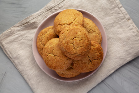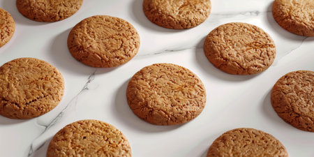 Top view of delicious plain cookies arranged in an orderly grid pattern