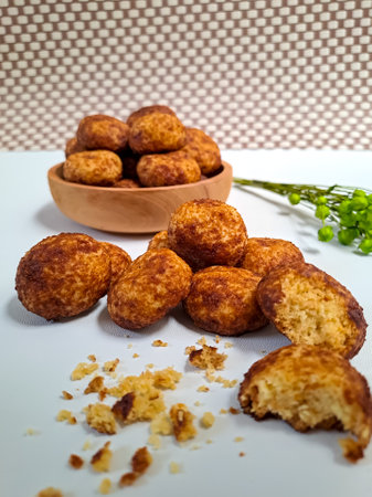 Cheese palm ball cookies, made from flour and cheese, then coated with sweet crunchy palm sugar. Popular serving to celebrate Eid Al Fitr (Lebaran Idul Fitri). Selected focus