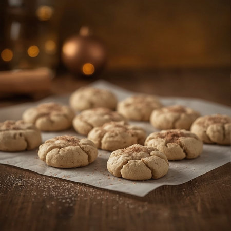 Closeup of freshly baked Snickerdoodle cookies