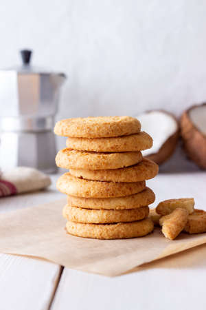 Coconut cookies on a white background. Coconuts
