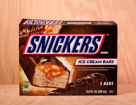 RIVER FALLS,WISCONSIN-FEBRUARY 07,2015: A box of Snickers brand ice cream bars. The Snickers brand was introduced in Nineteen Thirty.