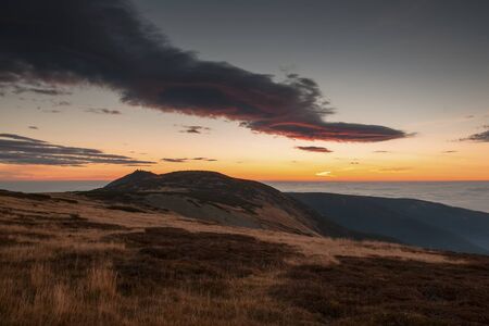 view to sunrise with inversion from the higest mountain of Czech Republic- Snezka.